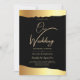 Apresentando um luxuoso design de casamento em preto e dourado foil (aparência, não é foil real), perfeito para adicionar um toque de elegância ao seu dia especial. Este evento de casamento black tie, tema formal e design muito glamoroso faz parte de uma coleção coordenada. A coleção de casamento preto e dourado inclui itens como cartões de RSVP, save the dates, convites, placas de boas-vindas, adesivos, guardanapos, programas, cartões de número de mesa, sacos de lembrancinhas, menus e rótulos de garrafa de vinho, além de uma variedade de tipos de cartões e papéis para se adequar a qualquer orçamento.