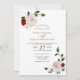 Convite De Casamento | rosa com poeirento aquoso e rosas vermelhas de rede de cabo adoram cantos opostos deste belo convite. O reverso é uma descarga elogiosa. Personalizar texto, estilo de fonte, cor e tamanho. Arte original criada para o BarefootBride™ por © WhimsicalArtwork™ - Esta é parte de um Conjunto completo de Artes de Casamento, chá de fraldas e outros artigos de papelaria para eventos semelhantes.