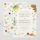Celebre o seu casamento boho chic de verão com este convite de aquarela caprichoso e modernamente belo, projetado com vibrantes botânicos boho e um tema cítrico refrescante. Limões e laranjas pintados à mão em aquarela, flores silvestres, folhas, folhagens, notas musicais, taças de vinho espumante e queijo, obra de arte original criada pela talentosa artista Catherine Sweetman. A tipografia moderna e elegante combinada com as aquarelas caprichosas criam uma atmosfera calorosa e alegre, definindo perfeitamente o tom para a sua celebração.