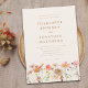 Convite de Casamento Boho para Prado de Flores Silvestres de Outono, uma mistura deslumbrante de charme outonal e sofisticação elegante. Esta obra-prima de aquarela apresenta flores silvestres pintadas à mão em um vibrante prado de jardim, com uma rica paleta de laranja queimado, terracota, roxo, amarelo, coral, umbra queimada, pêssego e rosa suave, capturando a calidez e a beleza da estação de outono.