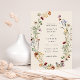 Convite de Casamento Boho Flor Silvestre. Este convite de casamento elegante e sofisticado apresenta belas flores silvestres pintadas à mão em aquarela, dispostas em uma adorável grinalda perfeita para casamentos de primavera, verão ou outono. Encontre itens correspondentes na Coleção de Casamento Boho Flor Silvestre.