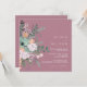 Convite de casamento com buquê de flores boêmio verde e roxo chic