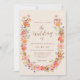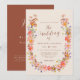 Convite de casamento Boho floral em laranja queimada e bege para o outono com grinalda de flores silvestres pintada à mão em aquarela e letra elegante