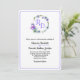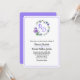 Bonito convite de casamento feito em matte branco, com uma lavanda e depois um quadro, em volta da borda externa. Os gráficos de uma coroa floral colorida, no topo do convite, têm as iniciais da noiva e do noivo feitas em lavanda. Personalize todos os campos de texto personalizados para atender às suas necessidades de casamento. Os produtos correspondentes estão disponíveis.