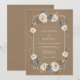 Este design apresenta um fundo castanho quente que fornece um cenário rústico para uma exibição floral elegante. Rosas delicadas creme e azul ardósia são artisticamente arranjadas com folhagens suaves para criar uma estética atemporal. A paleta de tons terrosos e azuis frios evoca uma atmosfera sofisticada de campo.