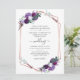 Convite de Casamento de Flora Roxa Geométrica você pode facilmente editar com os detalhes do seu casamento clicando no botão "Personalizar". Com um design moderno com uma moldura geométrica dourada rosa, flor roxa e tipografia popular em fundo branco.