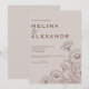 Um convite de casamento elegante e minimalista com ilustrações botânicas delicadas de flores silvestres. O design limpo e os elementos naturais suaves criam uma aparência atemporal e sofisticada, perfeita para uma celebração romântica.