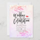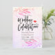 Modelo de Convite de Cartões de Celebração de Casamento Moderno / Chuveiro de Noiva - Folhas de Aquarela Rosa Salmão Magenta Hot Pink Roxo e Roteiro Manuscrito no Fundo de Splash de Aquarela.