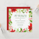 Este clássico convite de Natal vermelho apresenta flores poinsettia brilhantes criando uma bela borda vermelha de morango e folha verde. Um convite botânico festivo e brilhante para um casamento de férias com roteiro verde.