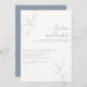 Convite Casamento Botânico de Script Azul Dusty com Código
