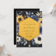 Este design elegante apresenta uma disposição floral dramática contra um fundo escuro. Girassóis dourados vibrantes e rosas azuis profundas criam um contraste visual impressionante. Toques de anêmonas brancas e folhagens prateado-esverdeadas completam esta composição botânica luxuriante e romântica para uma união sofisticada.