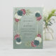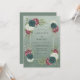 Este design apresenta uma paleta de verde salvia sombria adornada com elementos botânicos ricos. Rosas azul-esverdeadas profundas, peônias bordô e hortênsias brancas nítidas criam uma atmosfera sofisticada para um evento nupcial de inverno ou outono. Folhagens exuberantes e folhas delicadas rodeiam o layout com um sentimento terroso e orgânico. Os tons de joia profundos contrastam lindamente com o fundo verde suave.