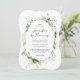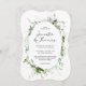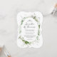 Uma escolha sonhadora e etérea nos convites para o casamento, esta delicada design tem um verde de jardim sabioso, folhas, samambaias e vinhas em torno de uma faixa branca de giz. Para adicionar ainda uma exclusividade distinta ao design, é usado um estoque de cartão em forma de colchete. Personalize o modelo de texto com os detalhes do casamento. Você pode adicionar ou remover linhas de texto conforme necessário para incluir todos os detalhes importantes.