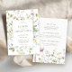 Convite de casamento elegante com detalhes sobre o fundo apresentando um belo quadro de flor silvestre de aquarela em pastéis macios. Perfeito para uma celebração romântica e inspirada na natureza ou um casamento temático. Para personalização ou outros produtos com este design, por favor, sinta-se à vontade para entrar em contato comigo.