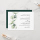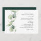 O modelo de Convite de Roteiro de Chá de panela Eucalyptus Greenery pode ser facilmente editado para o seu casamento e é perfeito para um casamento elegante chic. Apresentando folhagem de eucalipto e tipografia moderna em fundo branco. Do lado oposto está um fundo verde esmeralda comum com uma sensação de boho