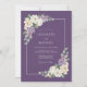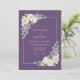 Um arranjo floral elegante embeleza este design com delicadas flores roxas e flores brancas cremosas. A folhagem verde exuberante complementa os acentos botânicos vibrantes, criando uma atmosfera romântica e caprichosa para uma ocasião especial.