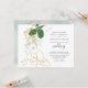 Convite de casamento botânico moderno, com folhas de folha de ouro e folhagem de eucalipto verde, com moderno roteiro escrito à mão e tipografia popular em fundo branco