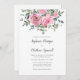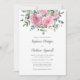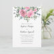Estes convites para o casamento apresentam rosas cor-de-água rosa empoeirada com folhagem de folha de eucalipto. Personalize-os com o seu texto. A suíte de casamento e os produtos de recepção também estão disponíveis.