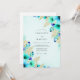 Este design etéreo apresenta vibrantes anemones em turquesa e azul-turquesa em estilo aquarela que florescem em um fundo azul claro sereno. Samambaias douradas cintilantes e folhas delicadas em estilo metálico adicionam um toque de luxo e sofisticação ao arranjo botânico. A paleta de azuis suaves e verdes ricos cria um clima refrescante e romântico, perfeito para um evento elegante de primavera ou verão.