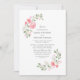 Mão pintada de flores aquáticas convite para casamento. Pelúcias, rosas e anêmonas, de cor rosa-branca, com folhas verdes pastel e ramos de árvores. Os florais de aquarelas pintados sobre fundo branco fazem uma coroa elegante e romântica em torno da tipografia da na moda.