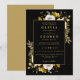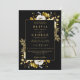 Este convite de casamento floral preto e dourado moderno e elegante pode ser personalizado com suas informações em tipografia sofisticada. Projetado por Thisisnotme©