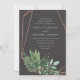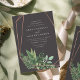 Escolha estes convites botânicos de cor rica para casamentos no inverno elegantes, núpcias de outono ou outono, ou casamentos noturnos no verão. A design moderna quic combina elementos naturais e geométricos para um olhar fresco e olhado. Os detalhes do seu casamento aparecem em letras brancas, enquadradas por uma falsa borda de folha de cobre, acentuada por folhagem verde, folhas exuberantes, e pequenas flores brancas no canto inferior esquerdo, em um fundo de tons ricos. Itens correspondentes disponíveis na nossa coleção de Estufa.