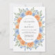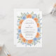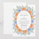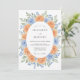 Este desenho botânico apresenta uma disposição exuberante de rosas damasco e azuis em estilo aquarela. Folhas delicadas de sage verde e minúsculas flores de centáurea criam uma atmosfera suave e romântica para uma cerimônia sazonal. A paleta de cores de pêssego quente e azul celeste fresco oferece uma estética fresca e caprichosa perfeita para um evento ao ar livre ensolarado.