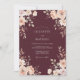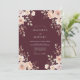 Este design apresenta um fundo malva profundo que cria um clima sofisticado e atmosférico. Rosas pêssego delicadas e flores rosadas fornecem um contraste suave contra a base escura. Folhas de eucalipto em tons de sage verde e cinza adicionam um toque de natureza ao arranjo floral. É uma escolha ideal para um evento outonal romântico.