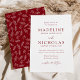 Convites de casamento elegantes e modernos, com detalhes de seu casamento em letras de burgundy, com caligrafia manuscrita, acentuando a design. Os simples convites de casamento têm um fundo branco. O convite de casamento branco e arrojado se reverte para exibir um lindo padrão foliar. Os convites são perfeitos para casamentos de primavera e jardins de verão.