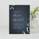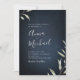 Design de folhagem botânica com cor aquática mínima moderna em fundo azul-marinho, simples e elegante, excelente para casamento moderno, casamento rústico e casamento de jardim botânico no verão e outono. Ver todas as peças correspondentes na coleção