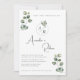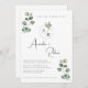 Traga a elegância da natureza para o seu dia especial com este convite de casamento teórico de eucalipto. A folhagem de aquarela combinada com a tipografia minimalista a torna perfeita para casais planejando um jardim, ao ar livre ou casamento rústico. Apresentando suas iniciais dentro a crista botânica, e layout limpo com fontes elegantes de serifa e script, este design sente-se moderno, mas eterno. Destaques 🌿: Ideal para casamentos botânicos, ao ar livre ou ao estilo bô