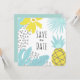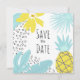 Casamento botânico moderno de verão Save the Date. O cartão tem um padrão simples e brilhante de folhagens tropicais. Parte de uma coleção de casamento. Confira minha loja para ver todo o conjunto de casamento para este design!