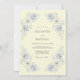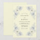 Este design apresenta um fundo creme quente acentuado por rosas suaves em tons de pervinca e azul poeirento, pintadas à aguarela. Os elementos botânicos artísticos são arranjados com um senso de equilíbrio clássico e elegância atemporal. Tons suaves e folhagens delicadas criam uma atmosfera romântica perfeita para um evento de primavera ou verão.