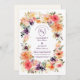 Uma vibrante design de casamento a aquarela, com flores de jardim exuberantes em tons de pêssego, coral, lavanda e amarelo ensolarado. O quadro floral pintado à mão cria uma estética romântica e fresca, perfeita para comemorações de primavera e verão cheias de cor e alegria.