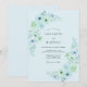 Este design apresenta uma suave lavagem de azul claro, criando uma atmosfera tranquila para um evento de primavera. Delicadas anemones em aquarela e folhagem verde-salvia exuberante criam um arranjo arejado. A paleta de azul pó e verde-menta evoca uma sensação de serenidade e beleza natural. Esses elementos botânicos pictóricos são perfeitos para um evento sazonal elegante.