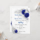 Belo rosa azul real e lírios com o convite de casamento botânico de flores prateadas. Os detalhes de brilho são simulados