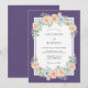 Este design apresenta um fundo de ameixa profunda combinado com flores de aquarela suaves. Rosas pêssego delicadas e anemônias azul claro estão aninhadas entre a folhagem de eucalipto verde-sage suave. A paleta de cores românticas e o estilo elegante criam um clima sofisticado para um evento de primavera ou verão. Elementos botânicos exuberantes proporcionam uma estética atemporal para uma ocasião clássica.