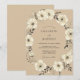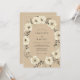 Este design apresenta um fundo quente e terroso reminiscente de fibra natural, criando um clima aconchegante e convidativo. Delicadas anemones creme e folhagens carvão escuro criam um arranjo floral orgânico em torno da área central. Esses elementos de tons neutros oferecem uma estética rústica atemporal perfeita para um ambiente ao ar livre ou celeiro.