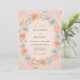 Este design apresenta um fundo suave de damasco adornado com um arranjo delicado de rosas e peônias em aquarela. A folhagem cinza-azulada suave e as folhas de eucalipto dólar de prata criam uma atmosfera sofisticada e romântica. A paleta de pêssego quente e azul poeirento é perfeita para um evento refinado de primavera.