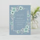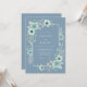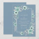Este design apresenta uma paleta de tons frios de azul aço suave e menta macia. Rosas e anêmonas elegantes em aquarela com centros escuros são combinadas com delicados fetos e raminhos de eucalipto. A estética é serena e sofisticada, tornando-a ideal para um evento de inverno ou início de primavera.