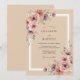 Tons quentes de bege fornecem um pano de fundo neutro para flores aquosas exuberantes em tons de rosa poeirento e ameixa profunda. Rosas delicadas e dálias florescem ao lado de folhagens macias e verdes, criando uma estética romântica e orgânica. Essa disposição artística evoca um clima sofisticado e boêmio com uma paleta suave, porém rica.