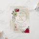 Convite de casamento único com flores românticas vermelhas e amarelas pálidas e folhas verdes. PARA MAIS PRODUTOS CORRESPONDENTES, clique na coleção acima ou entre em contato comigo.