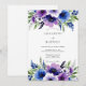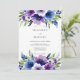Este design apresenta uma vibrante variedade de anêmonas aquareladas em tons de roxo ameixa e azul real. Folhas verde-sage exuberantes e delicados acentos de folhagem criam uma estética botânica rica, perfeita para um evento romântico de primavera ou inverno. O estilo pictórico oferece um toque elegante e artístico com uma paleta de cores ousada e fria.