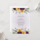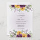 Este design apresenta um contraste marcante de rosas violetas profundas e dálias amarelas banhadas pelo sol. Raminhos delicados de lavanda e folhas de eucalipto verde empoeirado fornecem uma estética botânica exuberante. A arte em aquarela cria uma atmosfera vibrante, mas elegante, adequada para qualquer estação. A paleta de cores ricas traz uma beleza natural sofisticada para a arte.