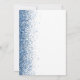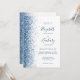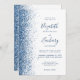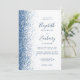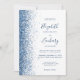 A borda esquerda deste elegante convite de casamento moderno apresenta uma borda azul de falso brilho. O texto personalizável combina manuscrito azul, fontes em copperplate e itálico em um fundo branco. O verso apresenta um design azul e branco correspondentes.