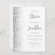 A borda esquerda deste elegante convite de casamento moderno apresenta uma borda falsa de prata. O texto personalizável combina o script de cinza e as fontes sans serif em um fundo branco. O verso apresenta um design branco e prateado correspondentes.