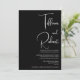 Faça uma declaração de elegância subestimada com nosso Convite para Casamento Branco e Negro Monocromático. Este convite exumenta sofisticação e estilo de eterno com seu design monocromático chic. A paleta de cores preto e branco cria uma estética moderna e elegante, perfeita para casais que apreciam designs limpas e minimalistas. O estoque de cartão de alta qualidade e a impressão precisa garantem uma aparência e um toque luxuosos. Com detalhes personalizáveis, você pode personalizar o convite com seus nomes, data de casamento e informações sobre local. Quer você esteja planejando um caso formal ou uma celebração íntima, nosso Convite para Casamento Branco e Negro Monocromático Chic define a palco para um evento inesquecível. Deixe a simplicidade monocromática falar muito e impressionar seus convidados com sua beleza sem esforço. Envie a primeira impressão perfeita com nosso Convite para Casamento Branco e Negro Monocromático em Chic e embarque em sua jornada de casamento com estilo de eterno e sofisticação. Parte da Coleção de Casamentos Pretos e Brancos.