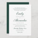 Este convite formal de casamento clássico apresenta texto tradicional em um roteiro elegante, na moda emerald verde e fontes pequenas em um fundo branco. O inverso é verde esmeralda sólido.