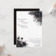 Este design de convite para casamento branco floral gótico e escuro apresenta um simples fundo branco brilhante com verde aquoso retrorreflector escuro e embelezamentos florais adorando uma fonte moderna minimalista que oferece uma apresentação sofisticada e caprichosa para um casamento romântico de góticos eterno ou outra ocasião especial. Belamente adaptado a um evento assustador de halloween no outono ou evento único de inverno num cenário casual ou formal. Tal como acontece com todos os nossos produtos, se houver algum pedido especial relativamente ao design, por favor não hesite em pedir.