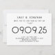 Tipografia Simples Moderna Casamento Negro e Branco. elegância moderna com este na moda de texto totalmente personalizável apenas design. Personalize facilmente as palavras e, se você tiver um site de casamento, gere automaticamente um código QR para ele no verso substituindo o URL de amostra para o URL do seu site de casamento. Você pode excluir o código QR de amostra se não for necessário por meio da opção editar mais, onde você também pode editar cores de texto e estilos e cores de fundo em cada lado, se desejar.